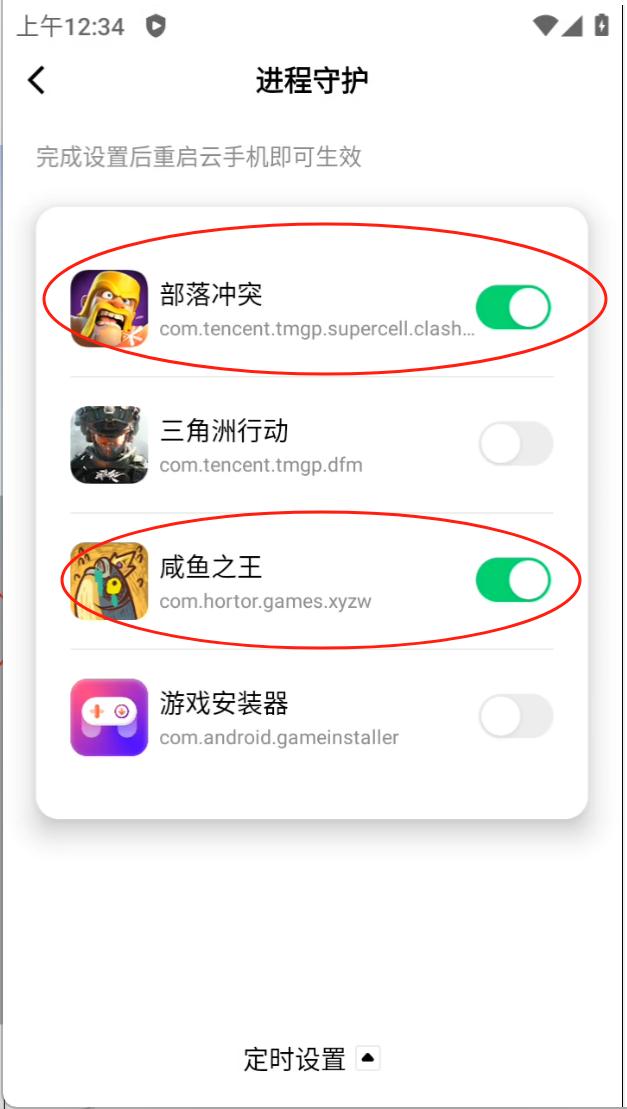 3、勾选需要扫码登录的游戏,如下图所示,勾选完成后,重启云手机,再次进入游戏,完成扫码登录动作。