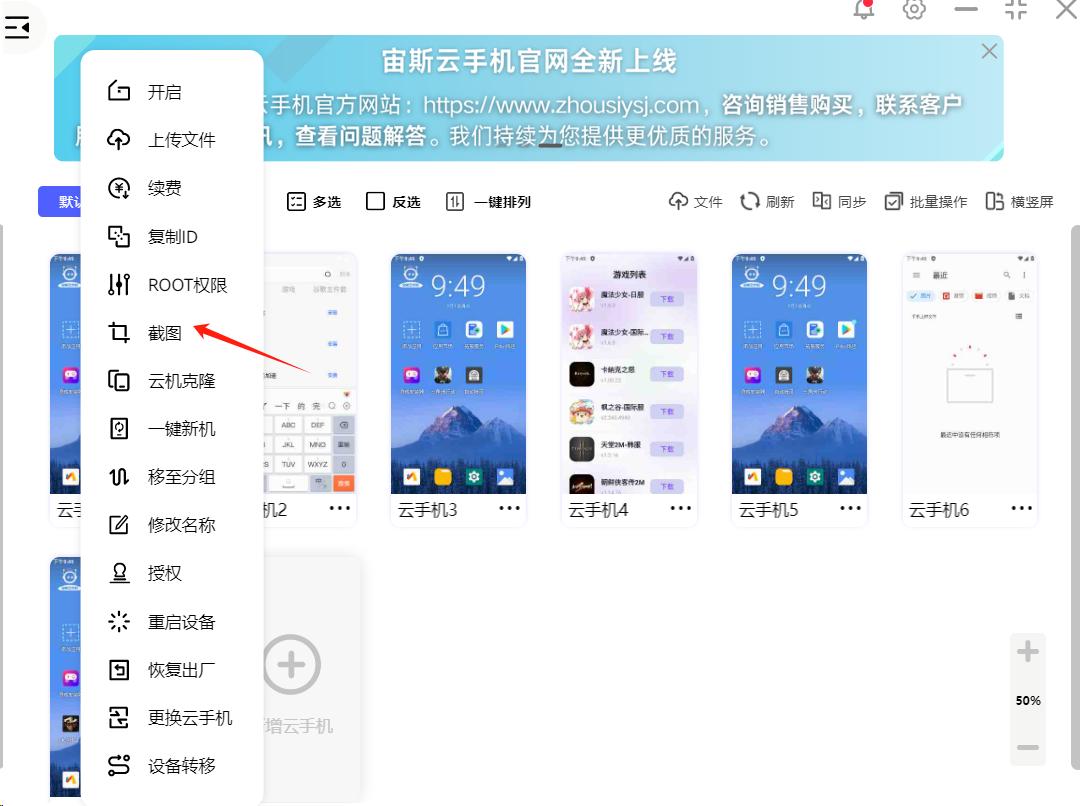 批量截图:在列表勾选需要批量截图的云机,点击右上角“批量操作”找到“截图”,将批量截图的压缩文件包放在电脑指定文件夹。