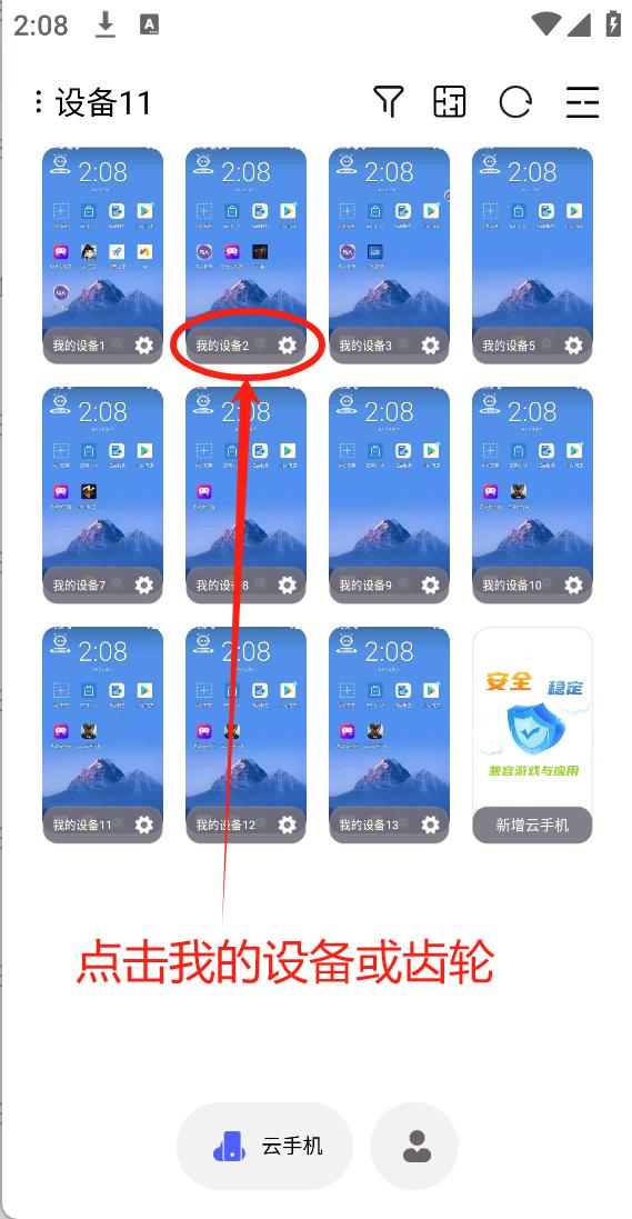 - 在设备列表,点击云手机操作按钮