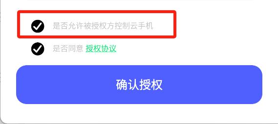 - 云手机发起授权时,如勾选“是否允许被授权方控制云手机”,则被授权方可以控制授权云机,不勾选则只能观看授权云机。
